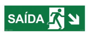 Placa S13; sinalizadora de indicação Saída de Emergência – Seta abaixo direita.