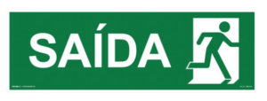 Placa S14; sinalizadora de indicação Saída de Emergência – Pictograma à direita.
