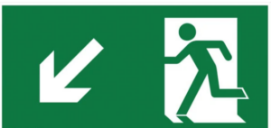 Placa S7; sinalizadora de indicação saída de emergência- Seta Abaixo esquerda.